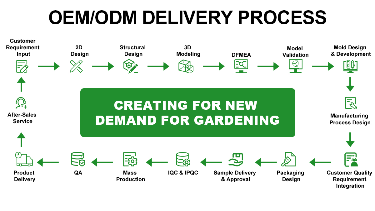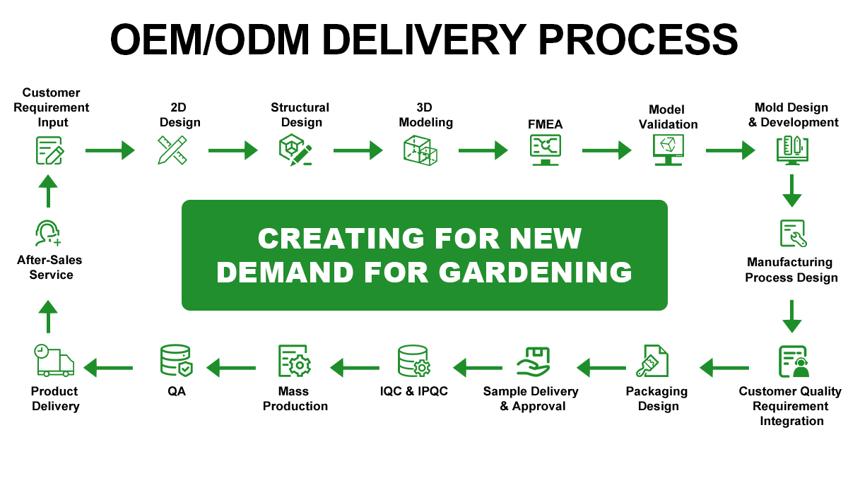 OUR BEST SERVICEEstablished in 1990, we specialize in OEM/ODM services for gardening tools, with deep expertise in serving global brand clients—particularly top-tier professional brands and supermarket chains in North America and Europe. We are well-versed in their service protocols and stringent quality requirements.